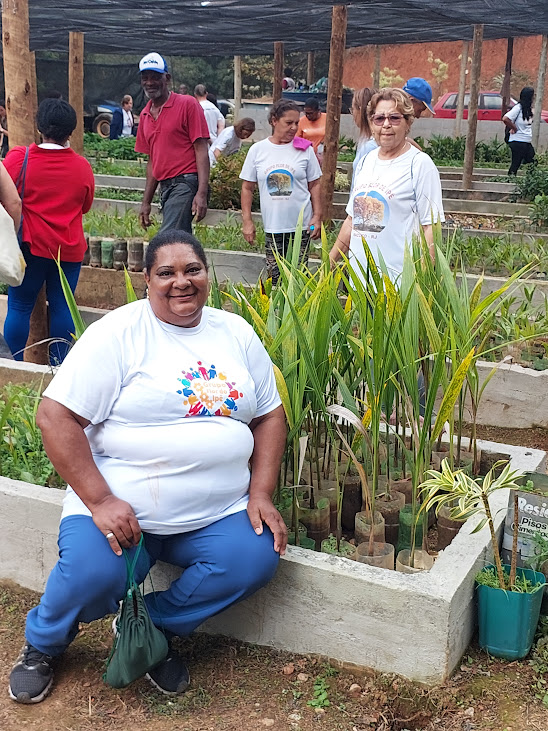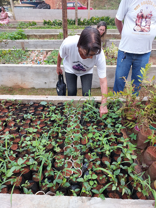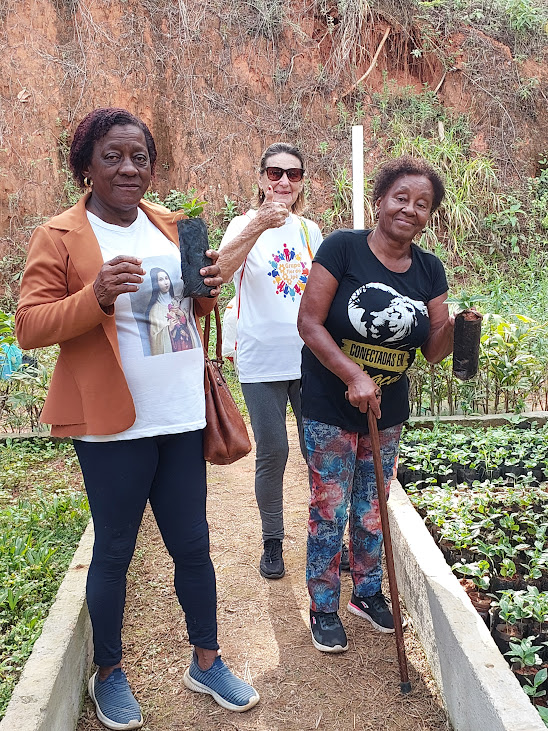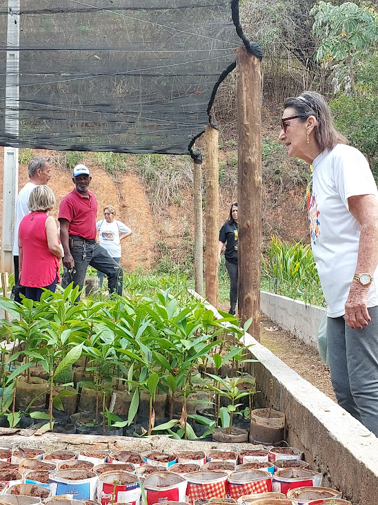 Algumas das senhoras participantes do passeio tiveram o privilégio de manter o contato direto com a terra de onde saem as mudas para reflorestamento