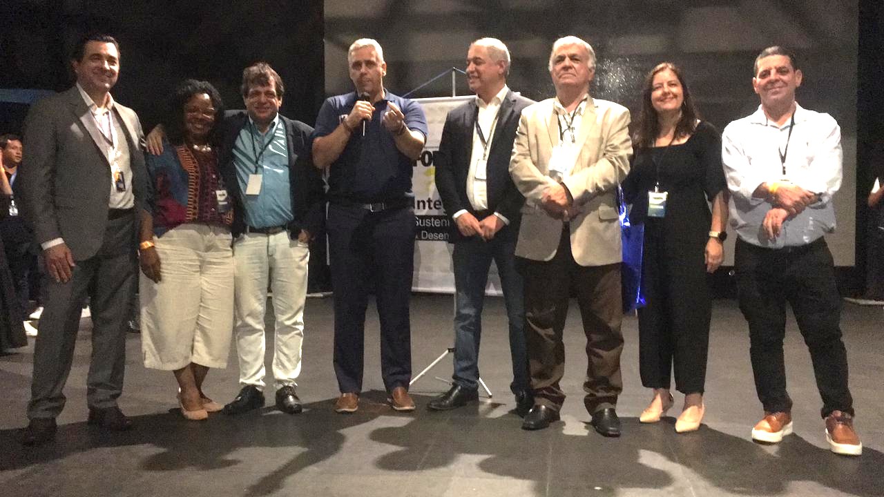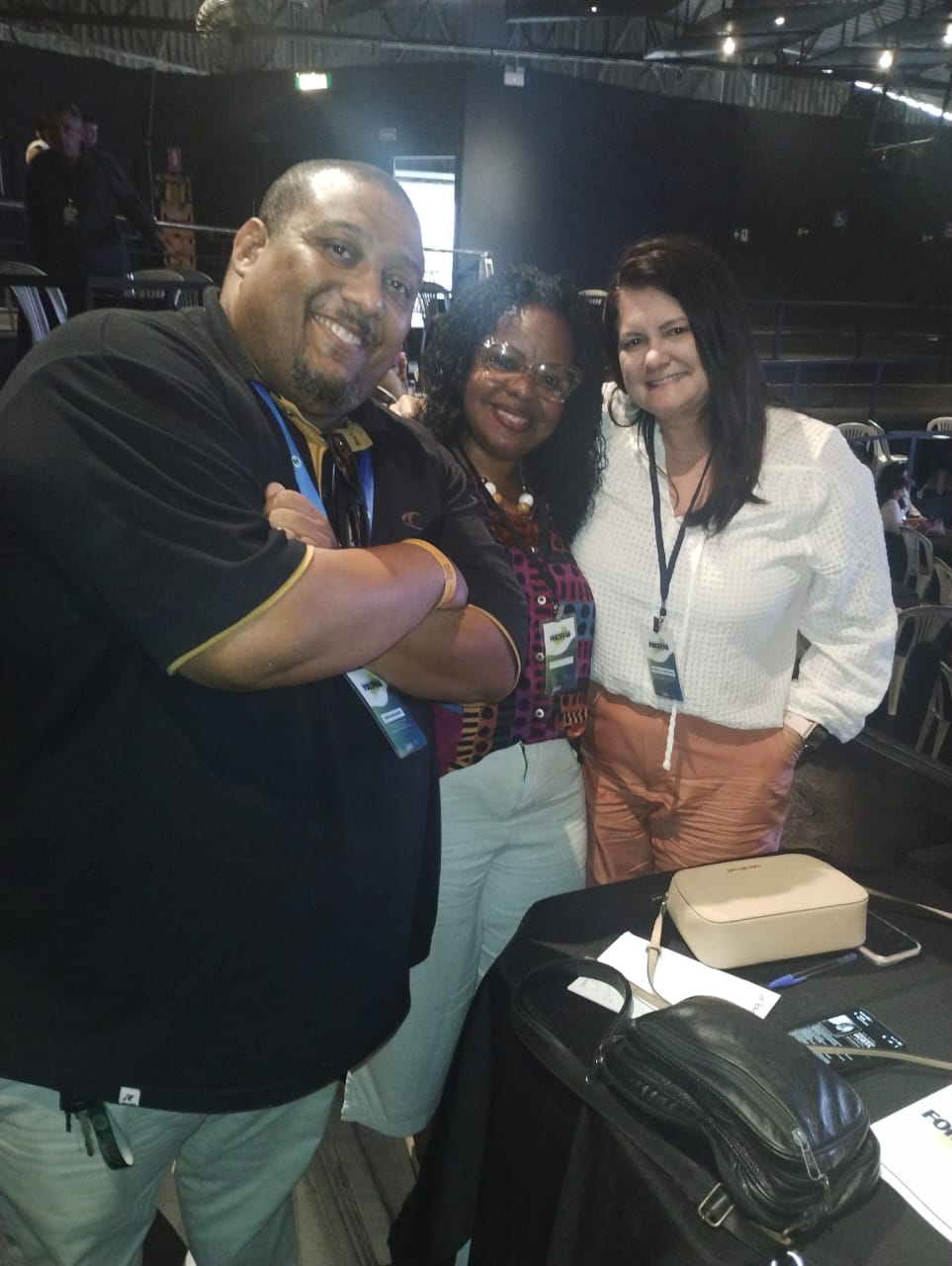 Margareth Anselmo entre os secretários de Trabalho de Macaé e Italva, que reforçaram a posição dos municípios fluminenses no encontro