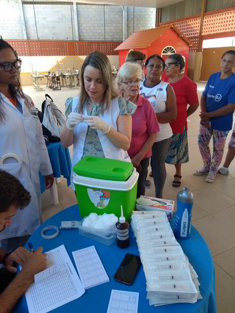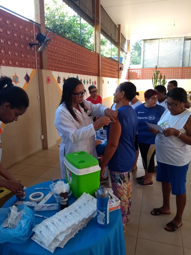 Hoje, (02), o encontro do Grupo da Terceira Idade de Macuco uniu o útil ao agradável. No Centro de convivência da melhor idade onde os participantes se reúnem semanalmente, uma equipe de saúde se deslocou até o local para realizar a vacinação dos idosos contra influenza, facilitando o acesso do grupo à vacina.