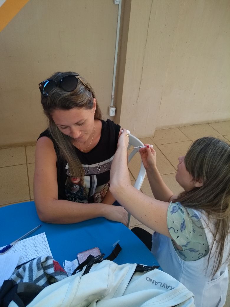 A primeira dama Andreia Boaretto esteve presente no local, saudando a todos e também foi vacinada. Alertou sobre a importância da vacinação e até fez brincadeiras com quem ainda tem medo de injeção, garantindo que a vacina não provoca dor.
