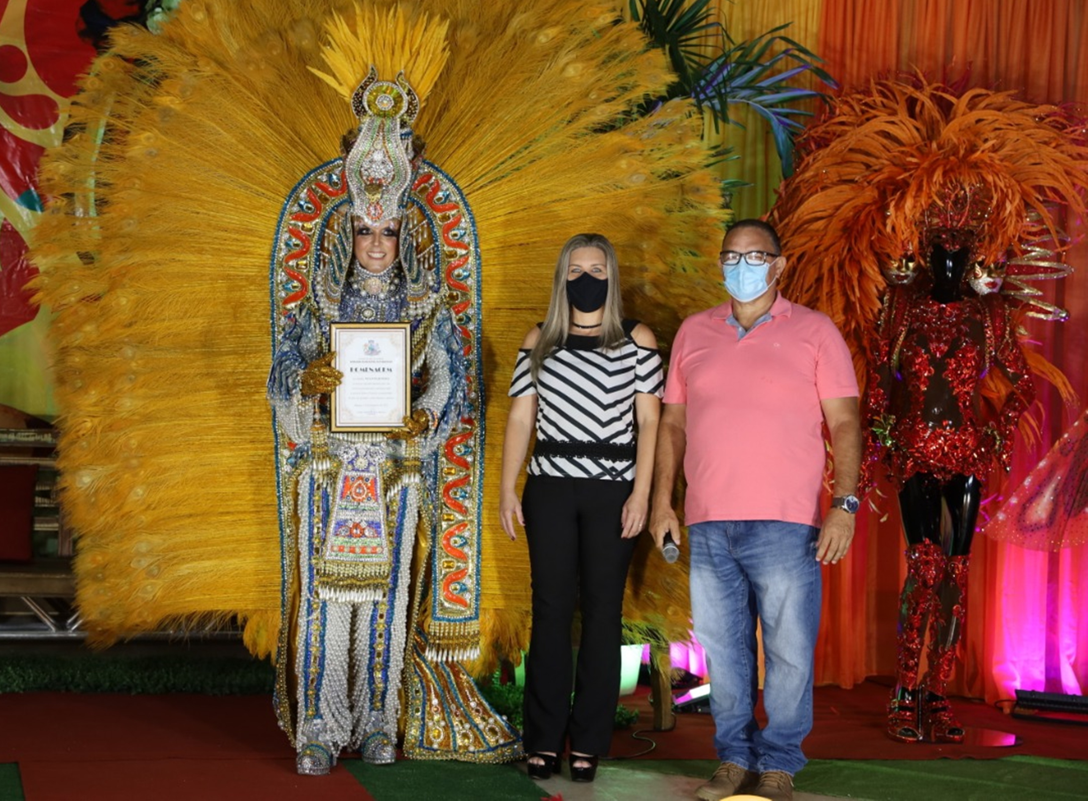 Ausente por problemas particulares, o prefeito Bruno Boaretto foi representado pela vice-prefeita Michelle Bianchini, que abriu oficialmente a Live com o diretor de Turismo Maurício Góes. Um bate-papo descontraído e informativo com o ícone do mundo das fantasias, o estilista Nelcimar Pires, foi a primeira grande atração, com o artista contando um pouco de sua vitoriosa trajetória, desfilando com uma de suas mais belas criações e recebendo uma homenagem das autoridades locais.