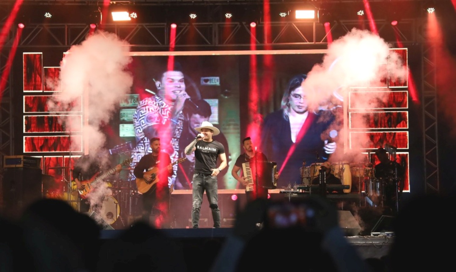 Ele não veio só. Com ele subiram ao palco o ‘Cabeça Branca’, que mesmo sendo dono da lancha e patrocinador do champanhe acabou não aparecendo nas selfies, e ‘Rita’, que foi perdoada pelo ato violento e voltou após a queixa ter sido retirada por ele mesmo. As citações imaginativas mostram a inventividade de um novo ícone da música brasileira que teve a incumbência de abrir a grade de shows da Expo-Macuco 2022.