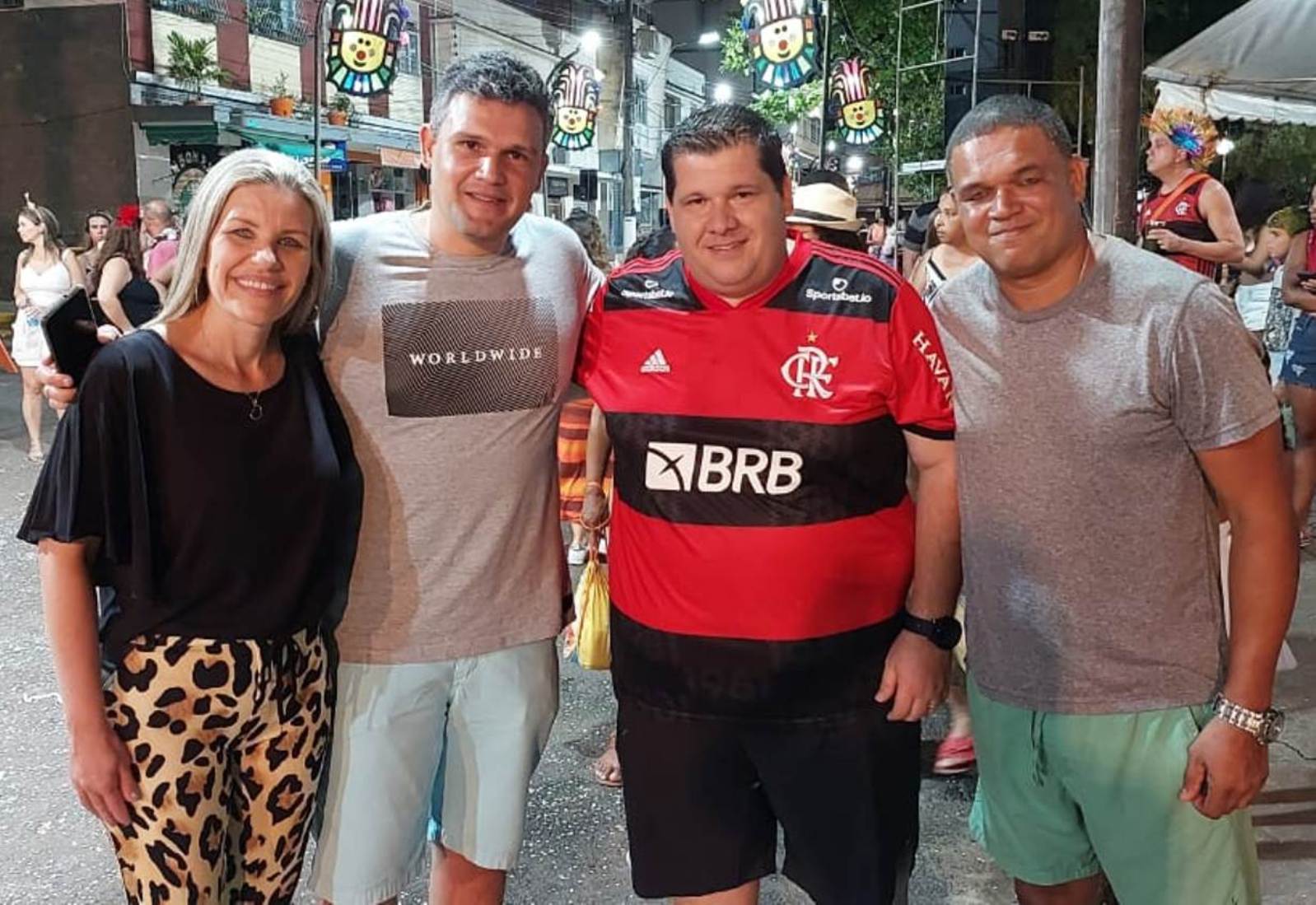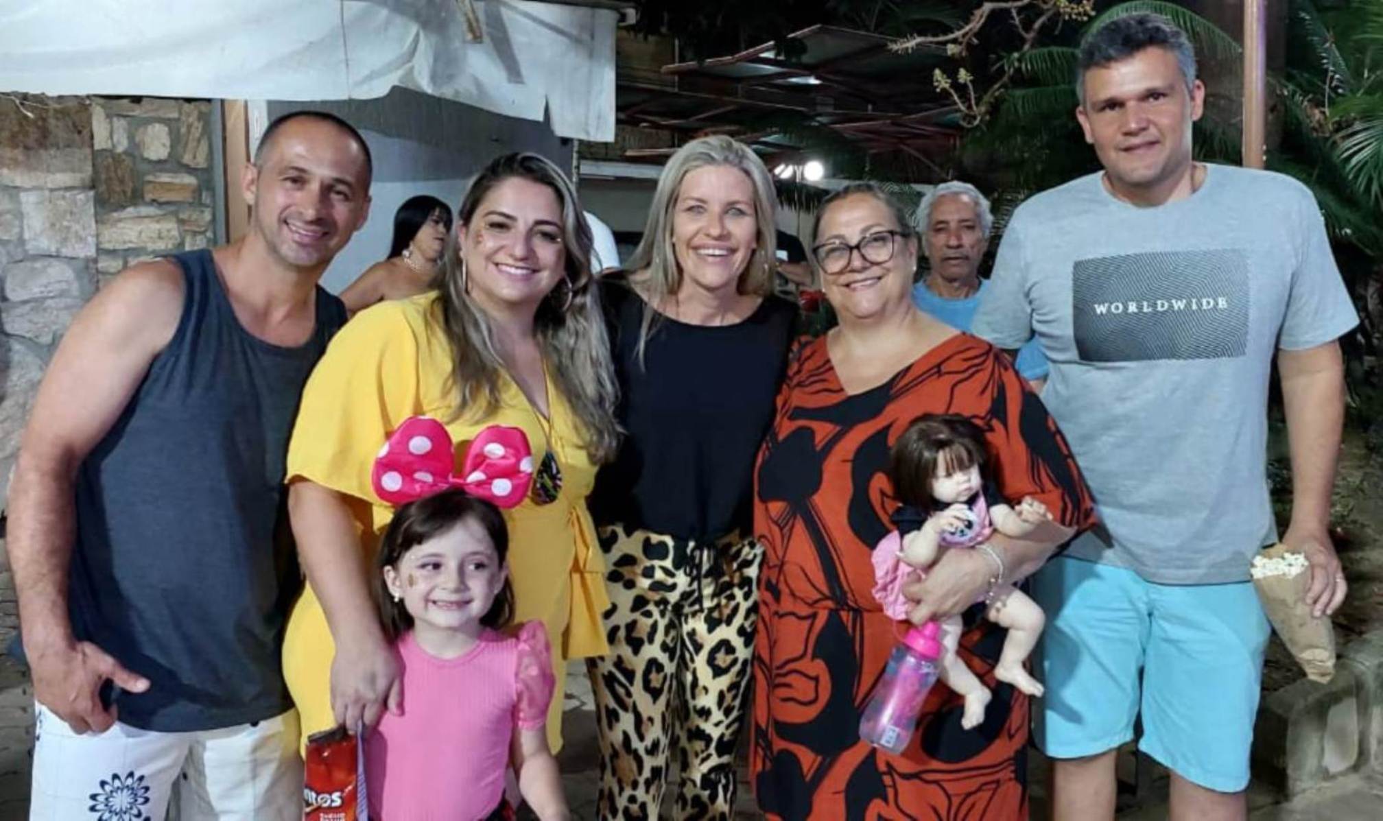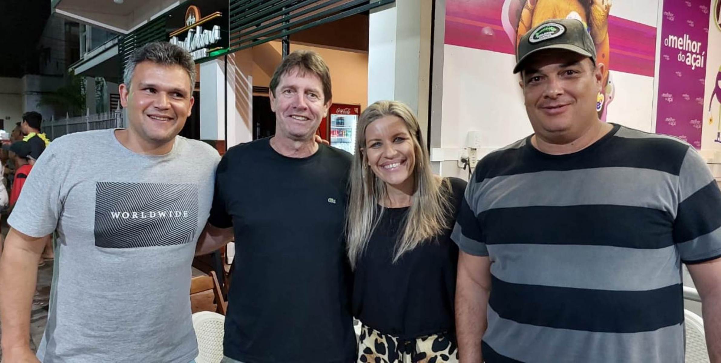 Mais uma imagem da prefeita Michelle Bianchini e seu esposo e secretário de Governo João Vitor entre amigos na noite de domingo