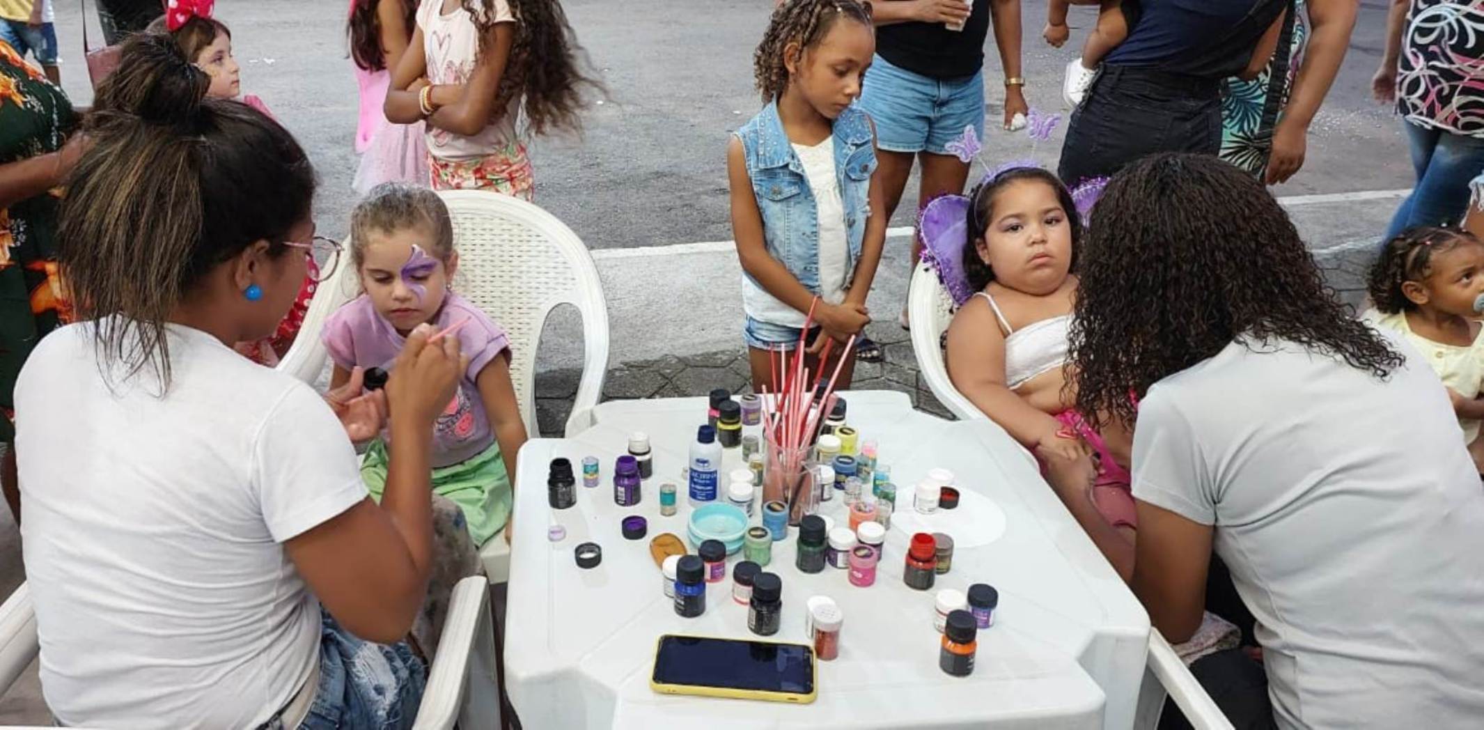 A criançada que participou da matinê teve pinturas temáticas à disposição para curtir a festa com maquiagem à caráter