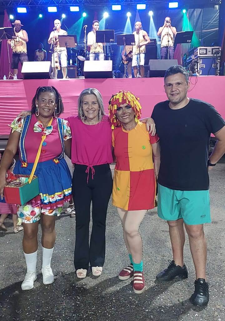 Secretários de Meio Ambiente e Segurança Pública, Firmo Daflon e Jocélio Bezerra, com as respectivas esposas ao lado da prefeita Michelle e secretário João Vitor