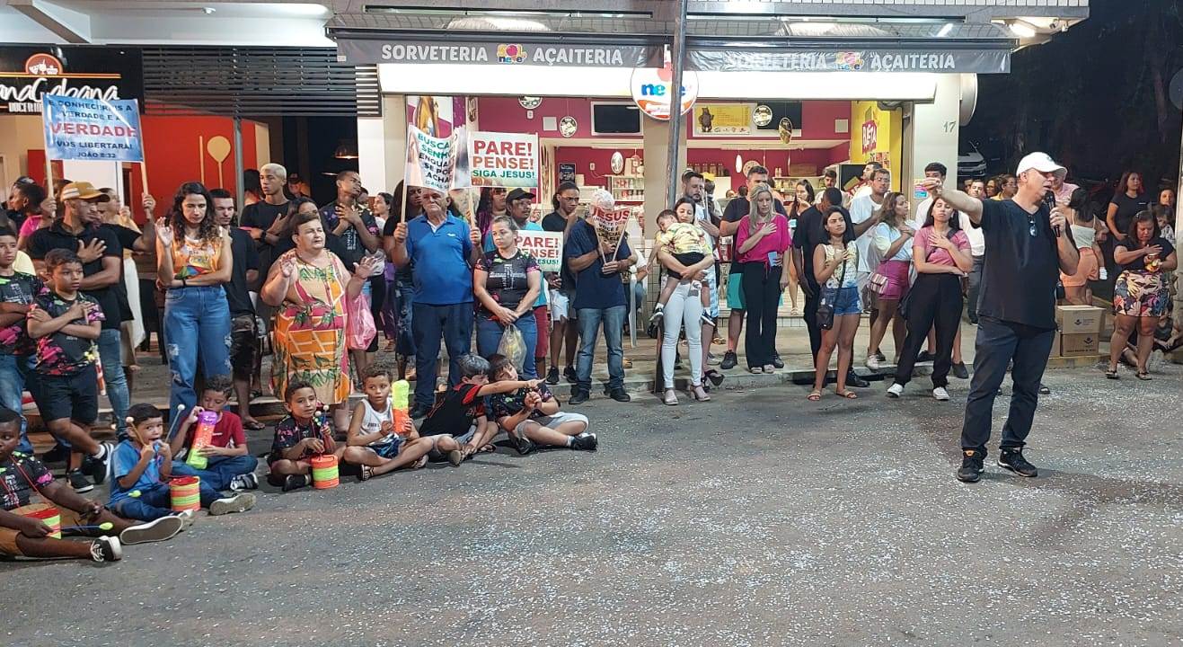 Logo em seguida uma pausa para a reflexão e contemplação ao Criador, com a participação do Bloco Maranata, que através da ‘Mocidade Dependente do Céu’ derramou lições de esperança, fé na vida e muitas bênçãos em forma de oração com o líder evangélico da Igreja Maranata, Pastor Rogê Malinosky. Houve apresentações teatrais bem ilustrativas sobre a importância de se louvar a Deus em todos os momentos, inclusive com a participação das crianças. Ao lado do esposo João Vitor Pontes, a prefeita Michelle Bianchini se emocionou com as lições.