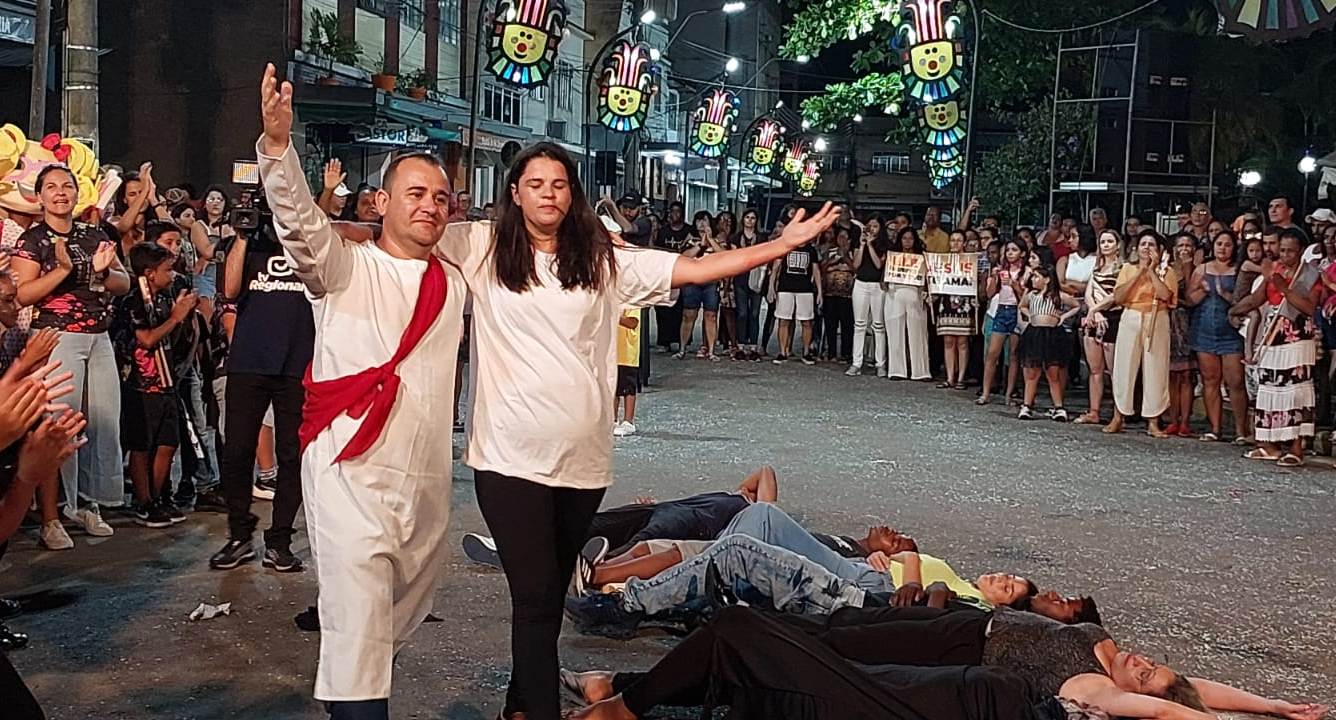 Encenações bem ensaiadas pelos membros da Maranata também fizeram parte do contexto proposto pela instituição evangélica