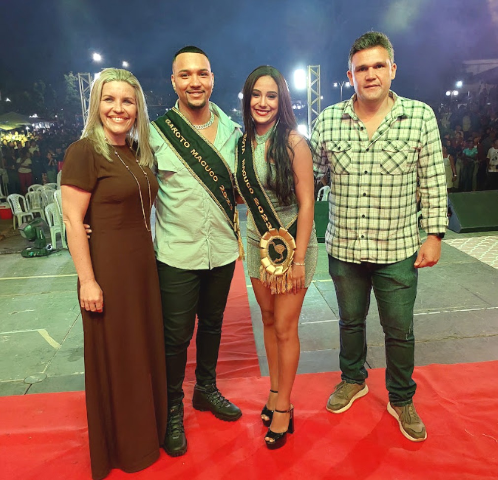 Garota e Garoto Macuco 2023 se confraternizam com a vencedora do ano passado e com as autoridades municipais