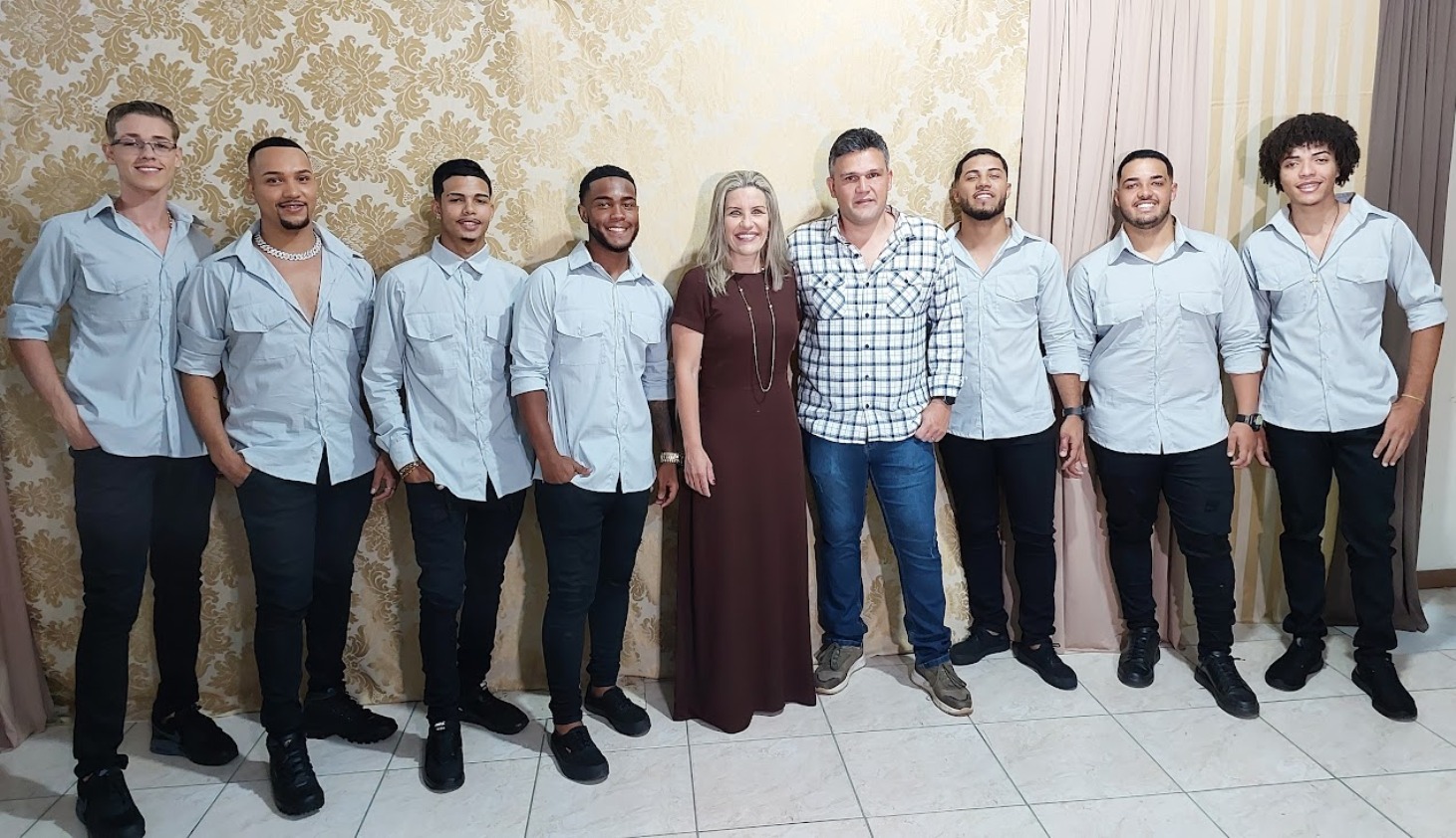 Corpo de Jurados posando para a fotografia oficial com a prefeita Michelle Bianchini e o secretário de Governo João Vitor Pontes