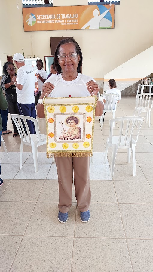 Nesta quinta-feira, dia 01 de junho, os trabalhos confeccionados a partir do aprendizado foram apresentados na sede da Secretaria de Envelhecimento Saudável, confirmando toda beleza e bom acabamento da arte produzida, cujo resultado final agora poderá ser conferido pela população no dia a dia, já que os estandartes irão enfeitar as residências durante o mês de junho, numa homenagem especial ao Padroeiro de Macuco, São João Batista, que tem em 24 de junho o ápice dos festejos.