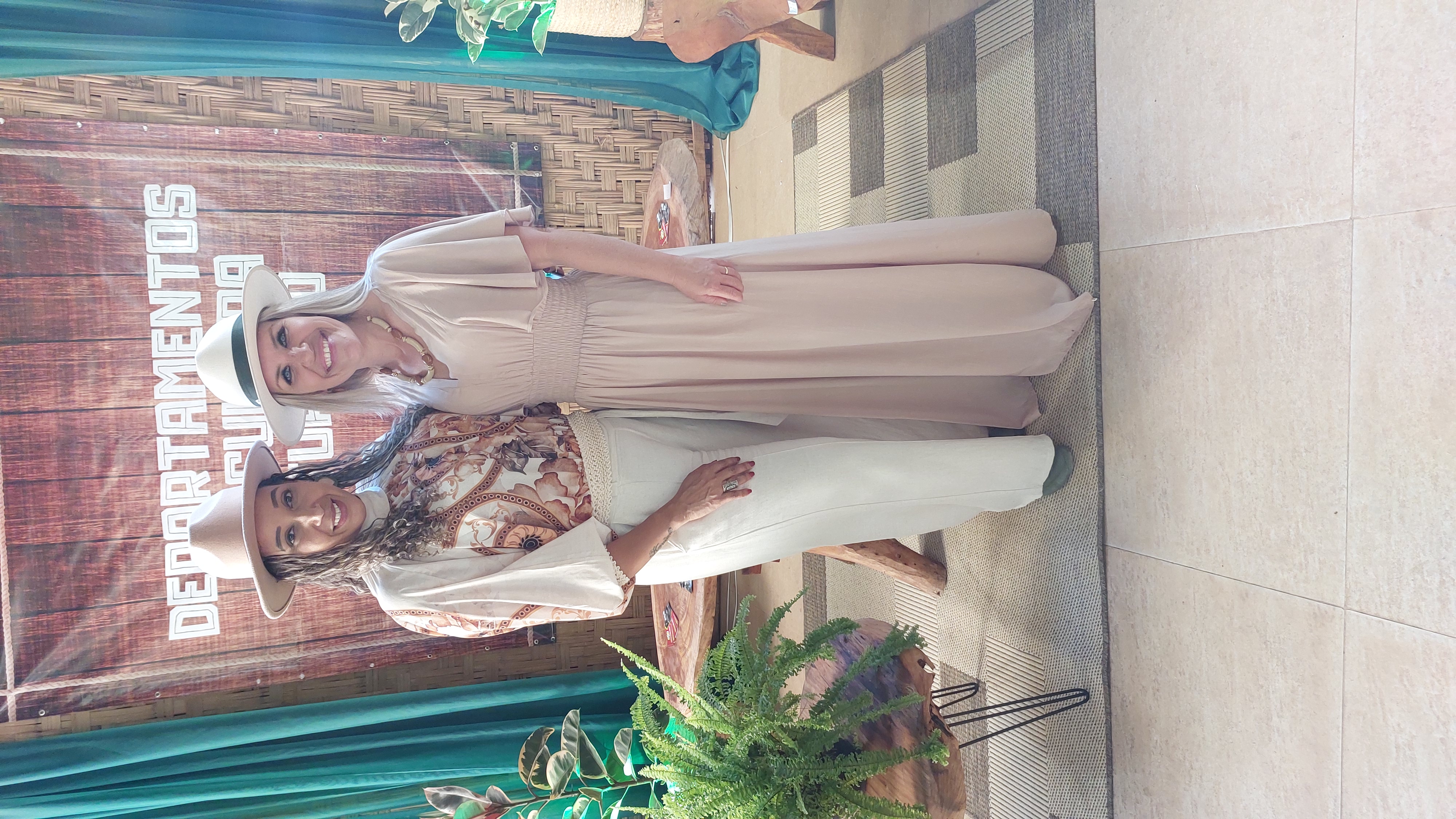 Realizadas pelo sucesso do espaço Artesanato e Gastronomia já no primeiro dia, prefeita Michelle Bianchini e diretora de Cultura Micaelle Mattos posam para a foto