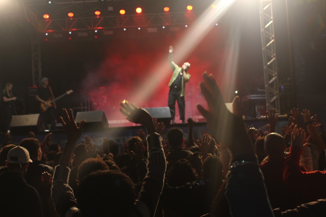 Foram muitos os momentos durante a apresentação em que o cantor católico convocou o público a orar em adoração a Deus