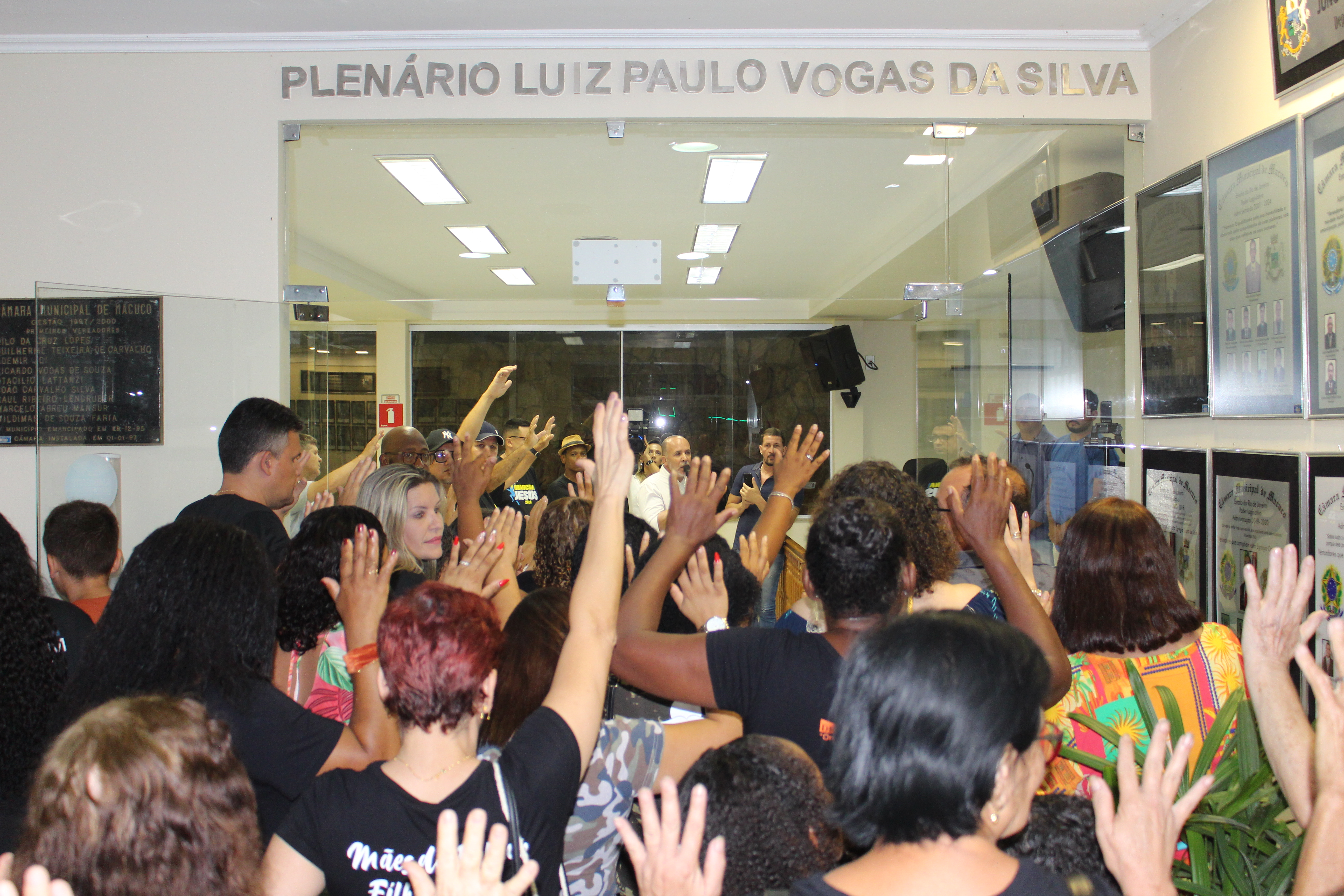 Na sede da Prefeitura de Macuco, autoridades municipais e eclesiásticas oraram para que o prédio também fosse abençoado durante a celebração evangélica