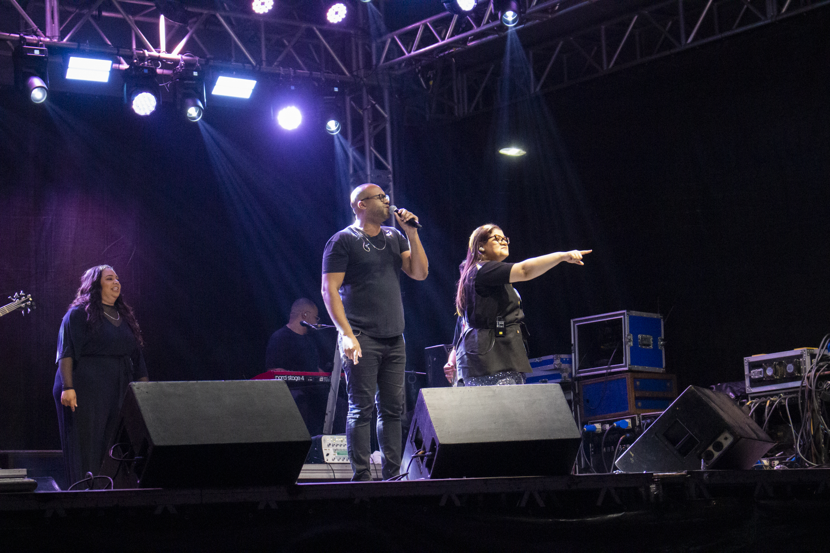 Já no palco principal, a prefeita, o vice-prefeito eleito, secretário de Governo e pastores oraram juntos por Macuco durante o início da celebração