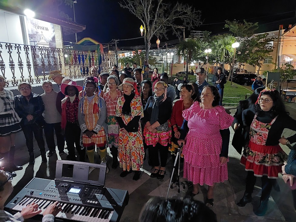 Antes mesmo de apresentar a quadrilha, integrantes da Melhor Idade cantaram e exibiram seus talentos comandados pelo maestro Marcelo Juliano