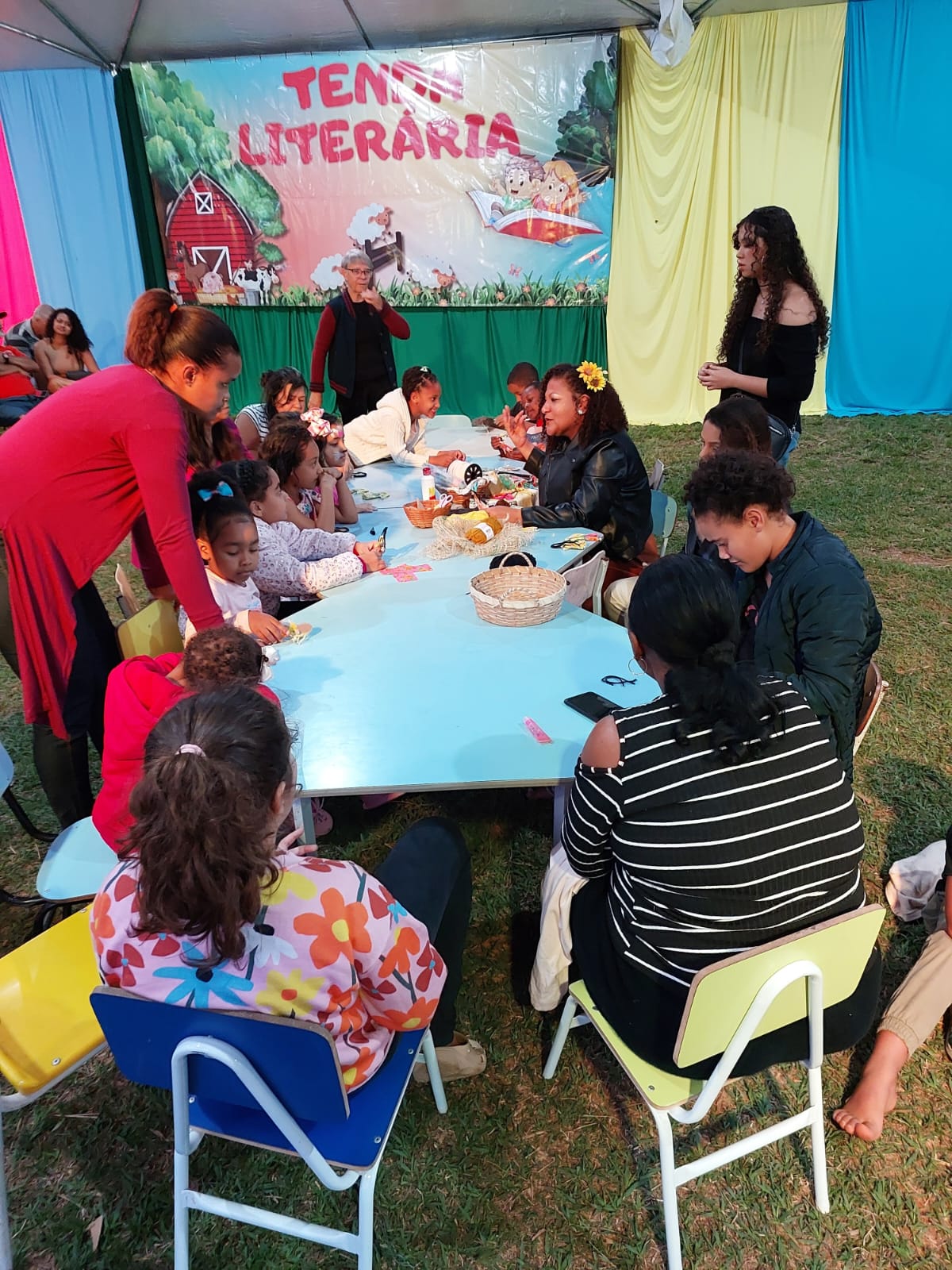 Se ver crianças felizes aquece o coração dos adultos, a Tenda Literária foi a condutora dessas emoções infantis na Expo-Macuco