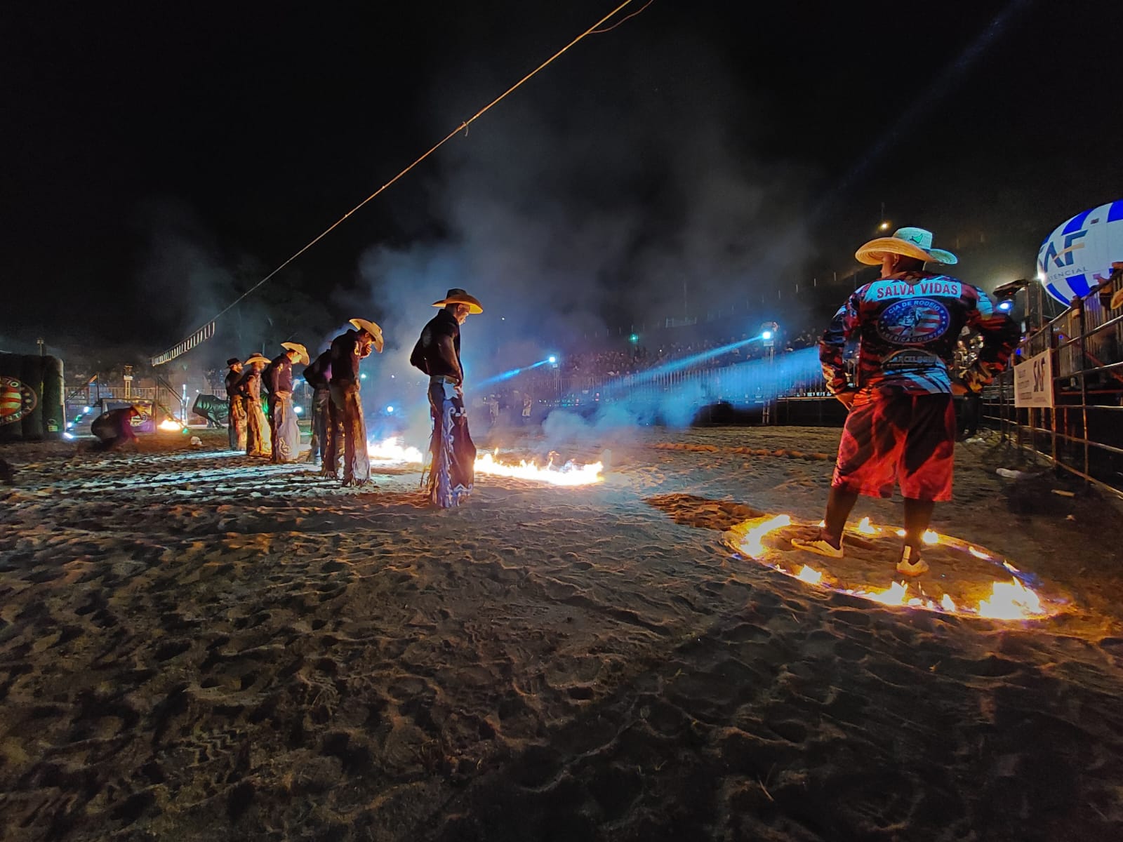 Se o Rodeio é uma atração chamativa e concorrida, dentro da arena, os peões mostraram coragem diante dos touros bravos em disputas de tirar o fôlego, nem sempre vencida pelos valentes cowboys. A apresentação de sábado foi acompanhada por um público expressivo, que vibrou a cada montaria e aplaudiu bastante em todos os momentos em que os versos do locutor arrancavam risadas ou expressões de surpresa pela inventividade. O espetáculo ganhou ainda mais emoção com fogos de artifício e efeitos de luzes, transformando a noite em um verdadeiro show de adrenalina e tradição.