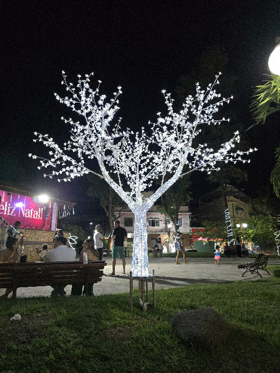 O capricho da Gestão Municipal com a decoração natalina foi tamanho, que a árvore parece realmente estar salpicada de neve, num efeito visual belíssimo